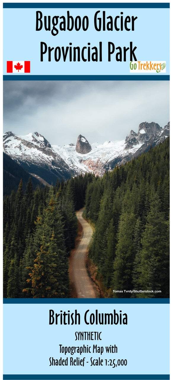 The Bugaboo Glacier Provincial Park map has a scale of 1:25,000 with shaded relief